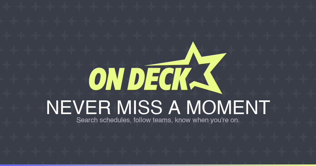 Yes, the basic functionality of On Deck (view a schedule, search for teams) is free for all users. Some advanced features require a login to function, and we will soon be launching a premium pass with enhanced features to make it even easier to track everything throughout the season.